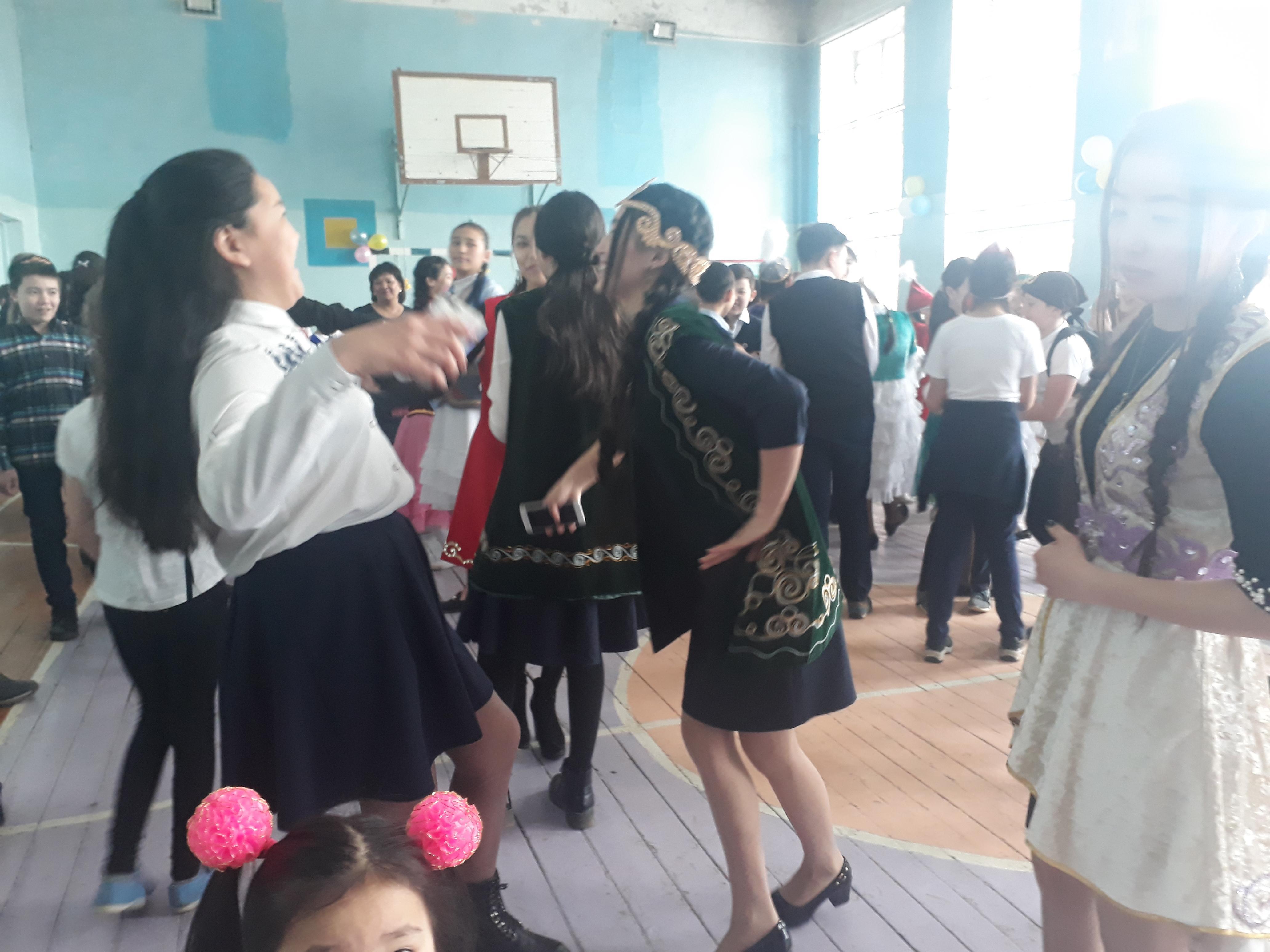 Оқушылар мектепке келген сәттен бастап мерекелік көңіл-күй барлығында сезілді, бұл бірінші кезекте мектептің дизайны ұлттық бояулар рухында болды.