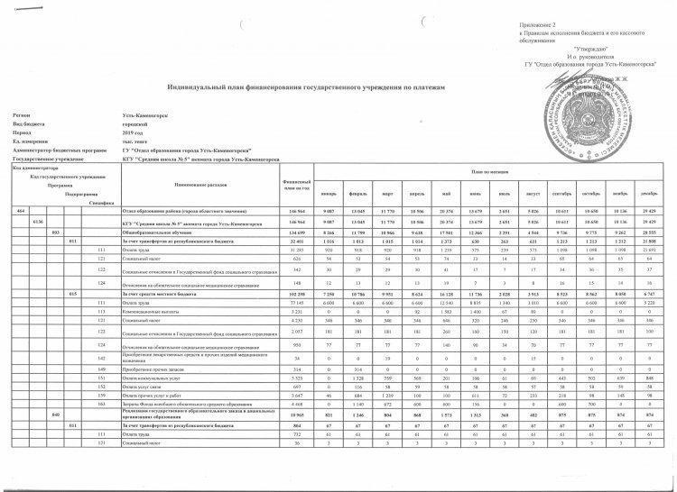 Индивидуальный план финансирования » Коммунальное государственное учреждение "Средняя школа №5"акимата города Усть-Каменогорска